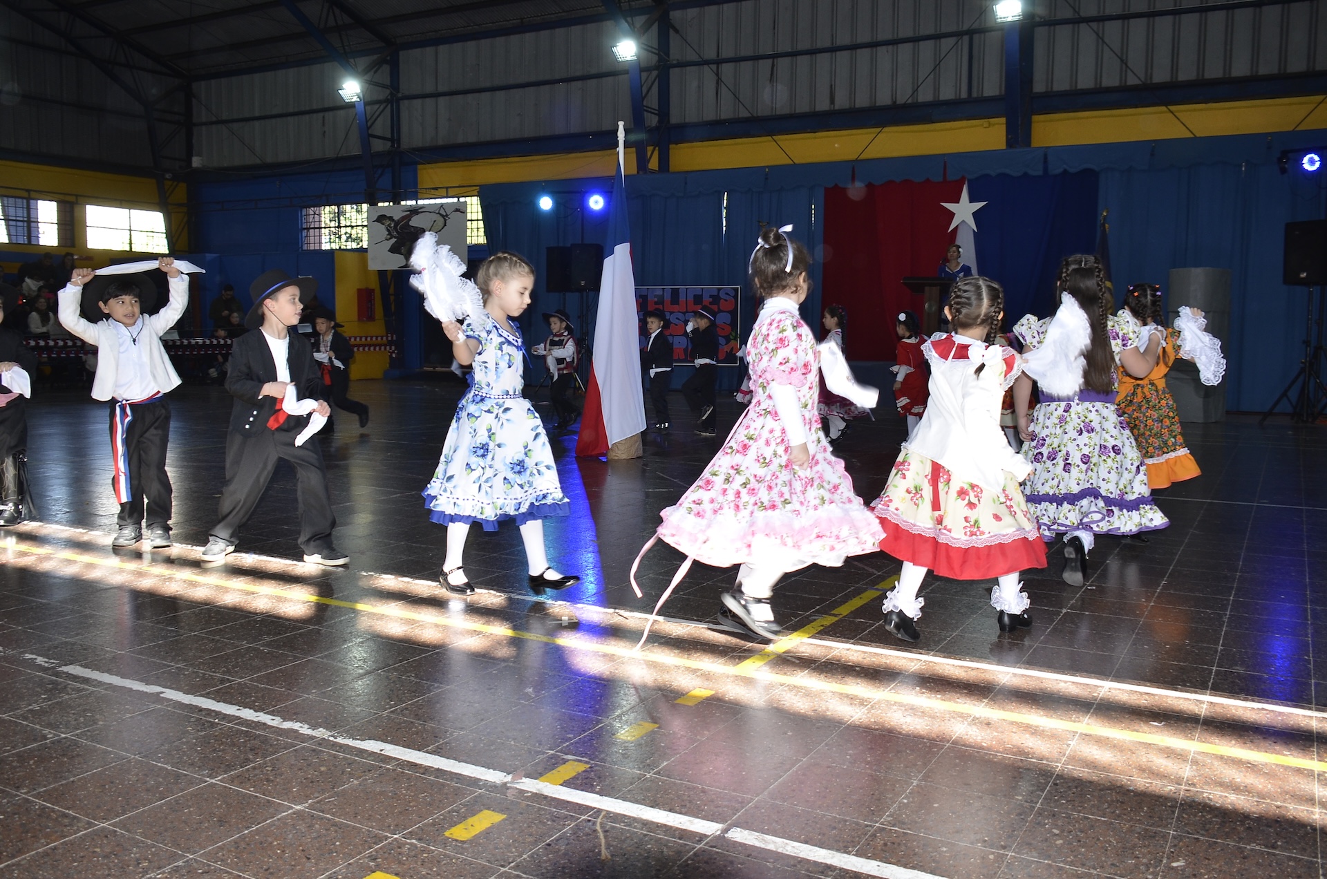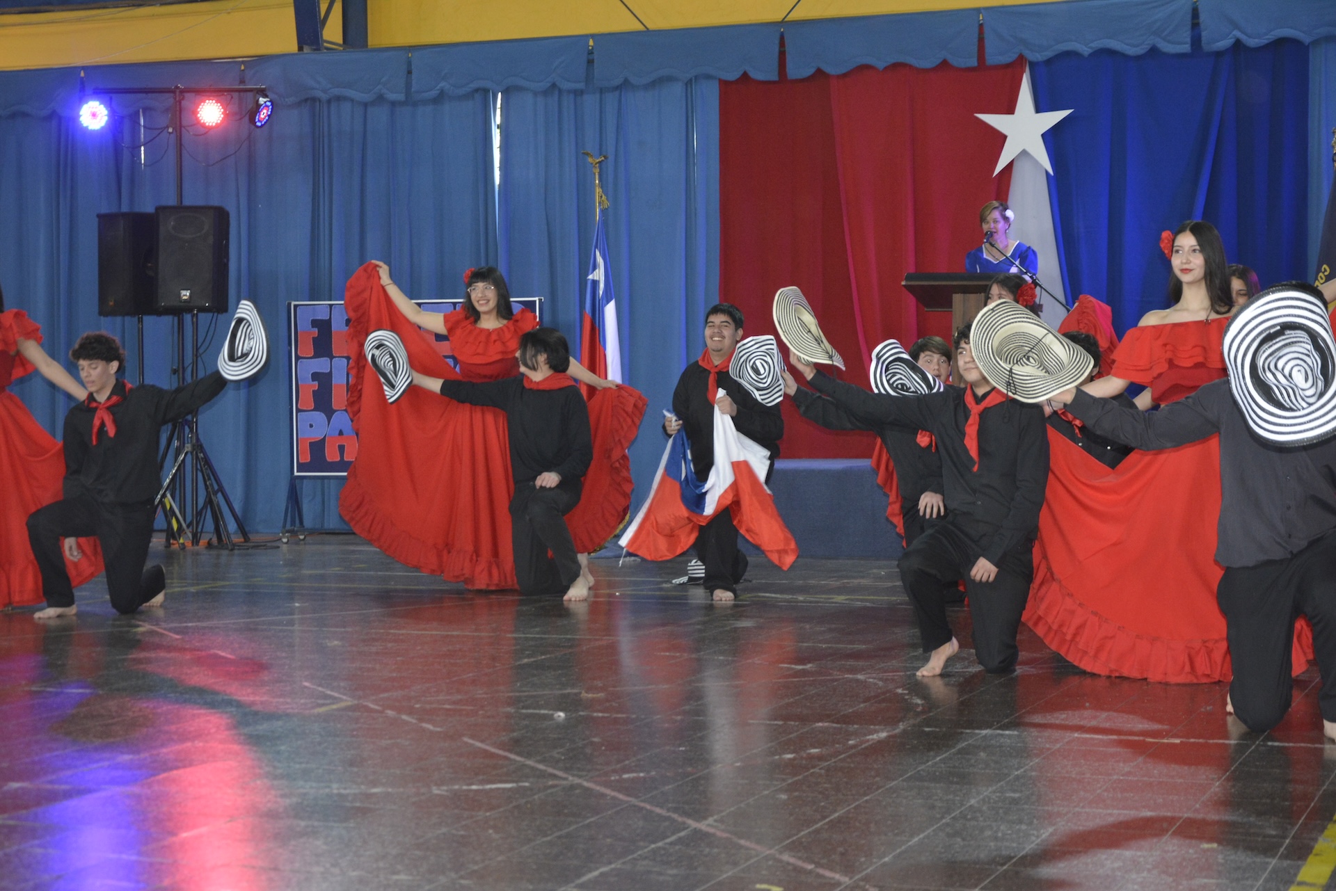 Con un lindo y organizado espectáculo se realizó la tradicional celebración dieciochera con las Danzas Tradicionales, actividad preparada por los profesores del Departamento de Educación Física.